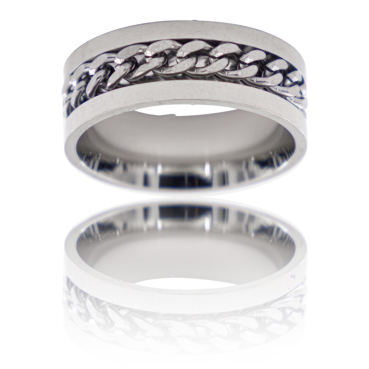 – La bague anneau pour homme CHAINA, livrée avec sa pochette cadeau, est une bague absolument incroyable avec sa chaînette en son centre. Cette bague varie avec style et élégance les matières, reliefs et sensations. Cet anneau homme propose un style très masculin. Sa couleur argent métalisé est sobre et raffinée. C’est une bague homme à un prix incroyable pour ce type de finition