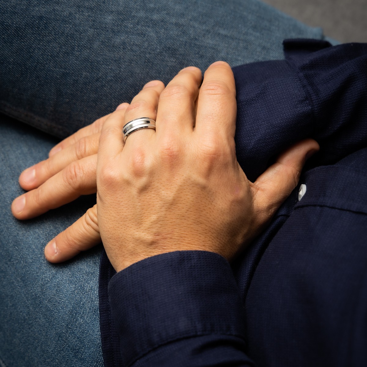 Bague anneau pour homme livrée avec pochette cadeau – La taille indiquée est le périmètre (le tour) de votre doigt – Bague acier 316L homme – Marque Française – Made in RPC – Matière : Acier inoxydable 316L – Largeur max : 8mm
