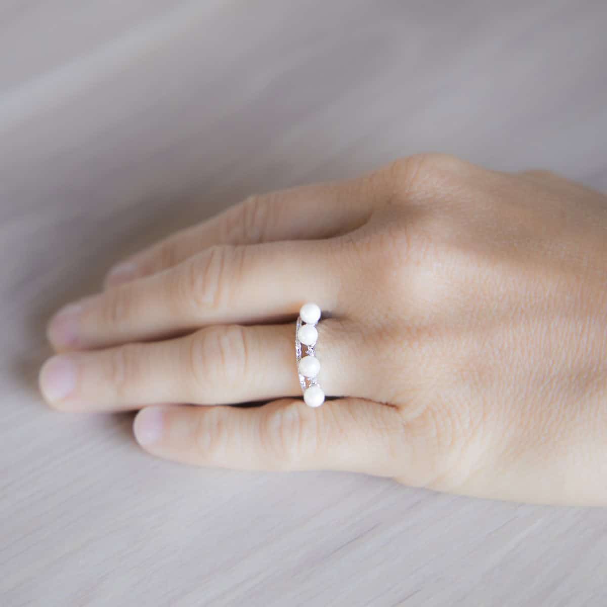– Cette bague ajustable ornée de jolies perles de synthèse accompagnera vos plus belles tenues de soirées. Vous allez faire des envieuses