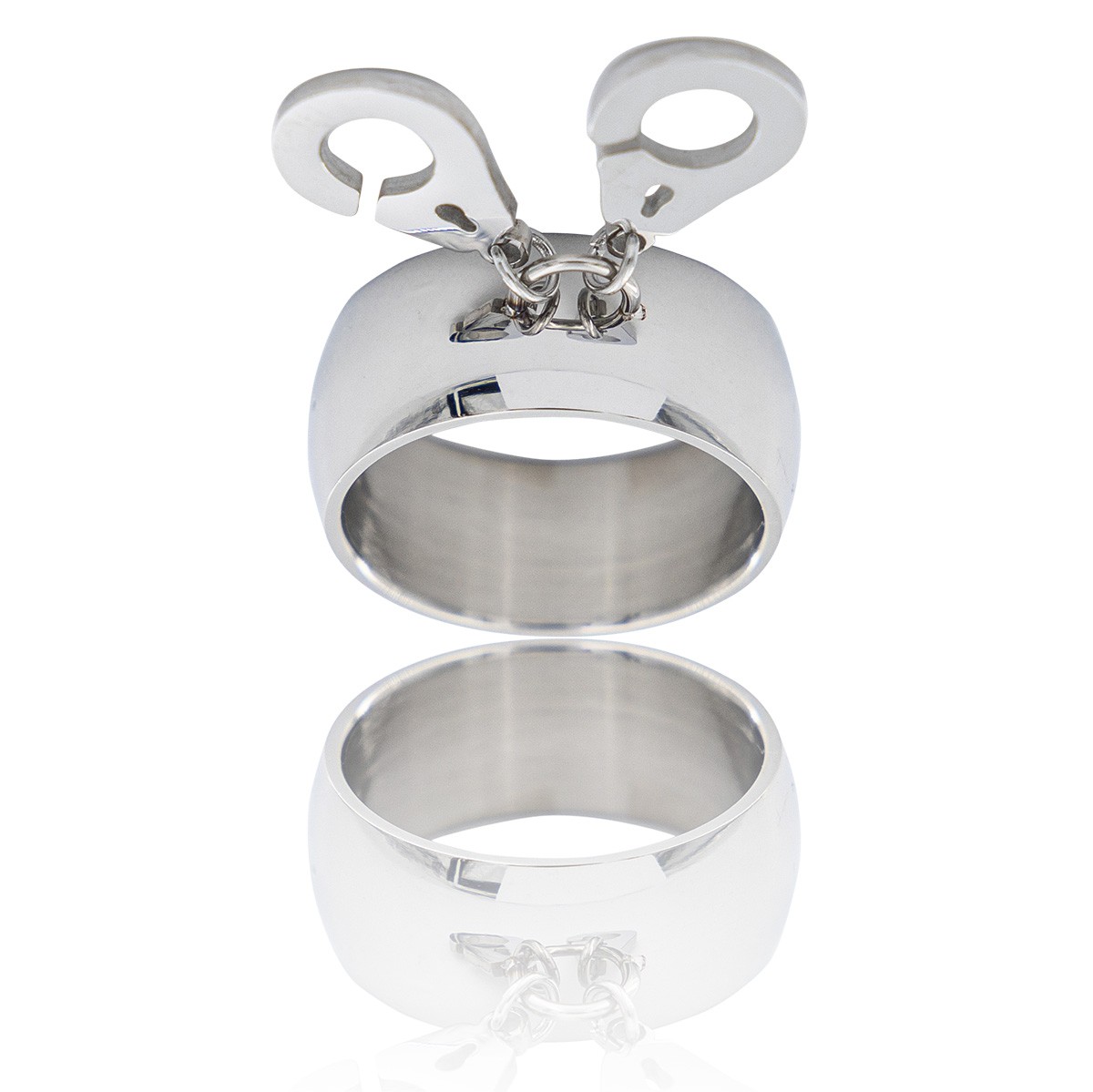La taille indiquée est le périmètre (le tour) de votre doigt – Jolie bague en forme de menottes – Marque Française – Made in RPC – Matière : Métal- Largeur : 10mm – Livrée avec pochette cadeau