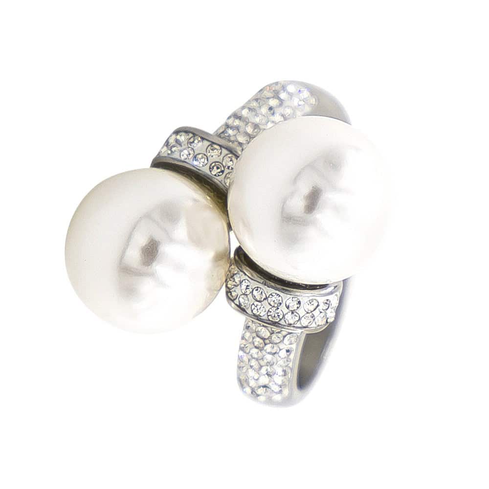 – Cette bague, certie de strass et réhaussée de deux perles, est faite pour vous qui soignez votre style. Soyez plus chic que jamais avec la bague PERLA