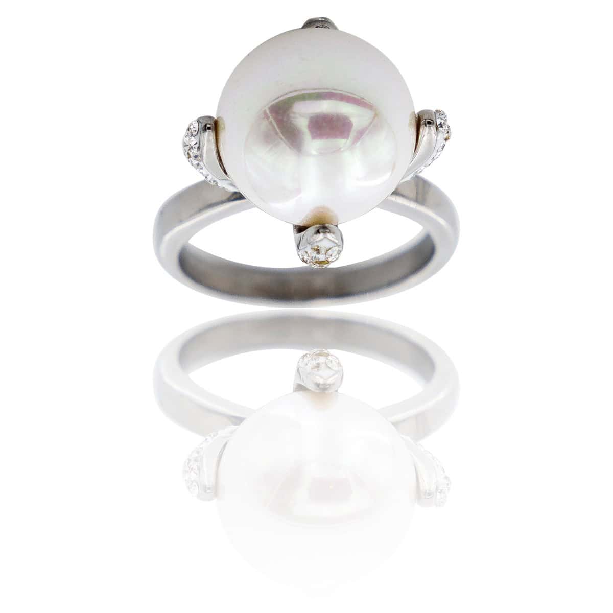 La taille indiquée est le périmètre (le tour) de votre doigt – Bague femme avec perle de synthèse et strass – Marque Française – Made in RPC – Matière : Métal – Largeur : 15mm – Livrée avec pochette cadeau