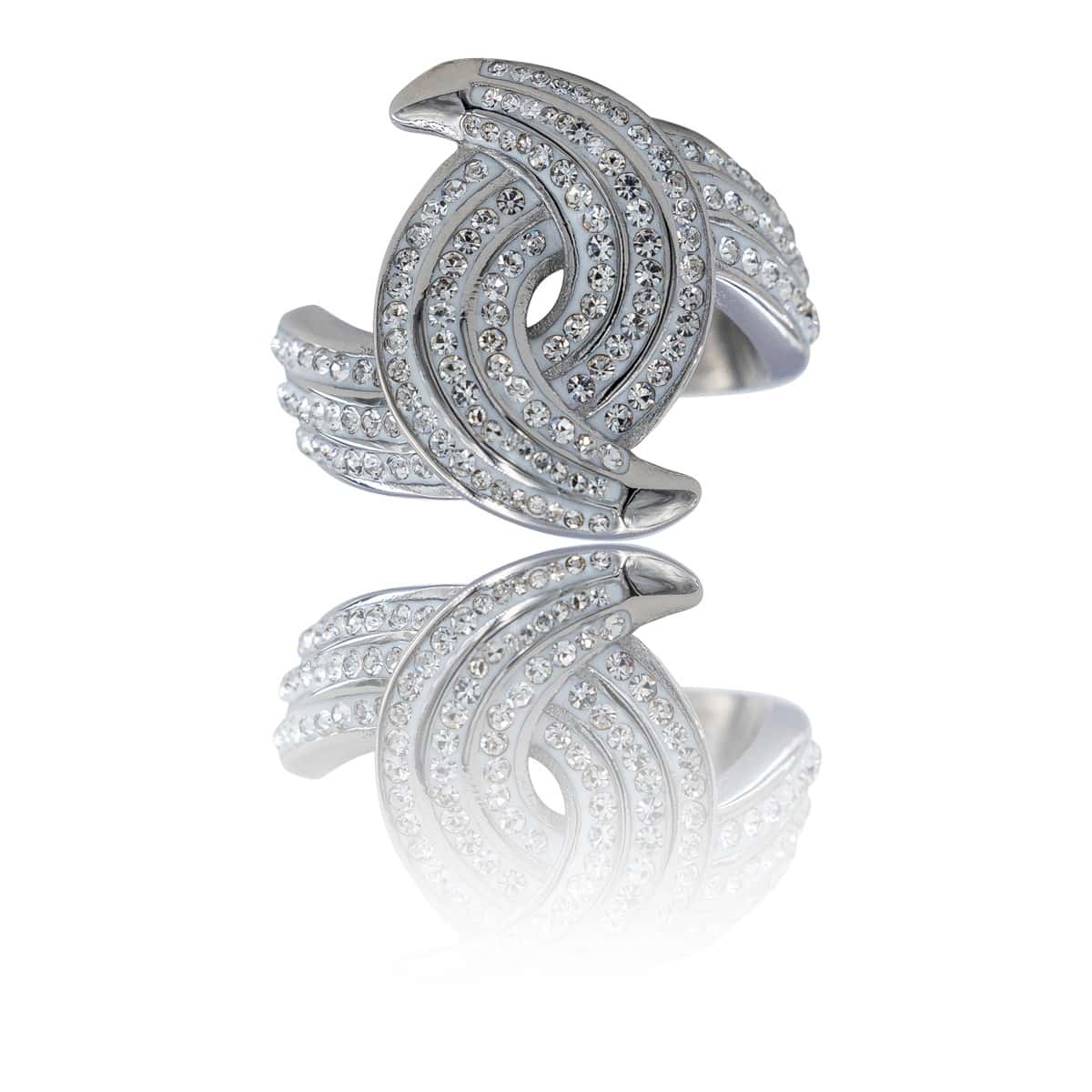 Bague femme ornée oxyde de zirconium – La taille indiquée est le périmètre (le tour) de votre doigt en millimètre (mm) – Marque Française – Made in RPC – Matière : Acier – Largeur : 20mm – Livrée avec pochette cadeau
