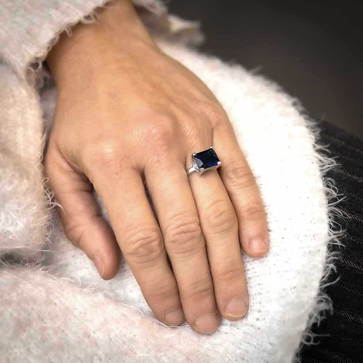 – Une très jolie bague femme certie d’un unique et splendide oxyde de zirconium bleu -Cette bague est un vrai cadeau à faire ou à vous faire. Tout en rhodium, elle est ornée d’un seul mais sublime strass en Oxyde de Zirconium d’un bleu incroyablement profond. Cette bague fera de vous une reine