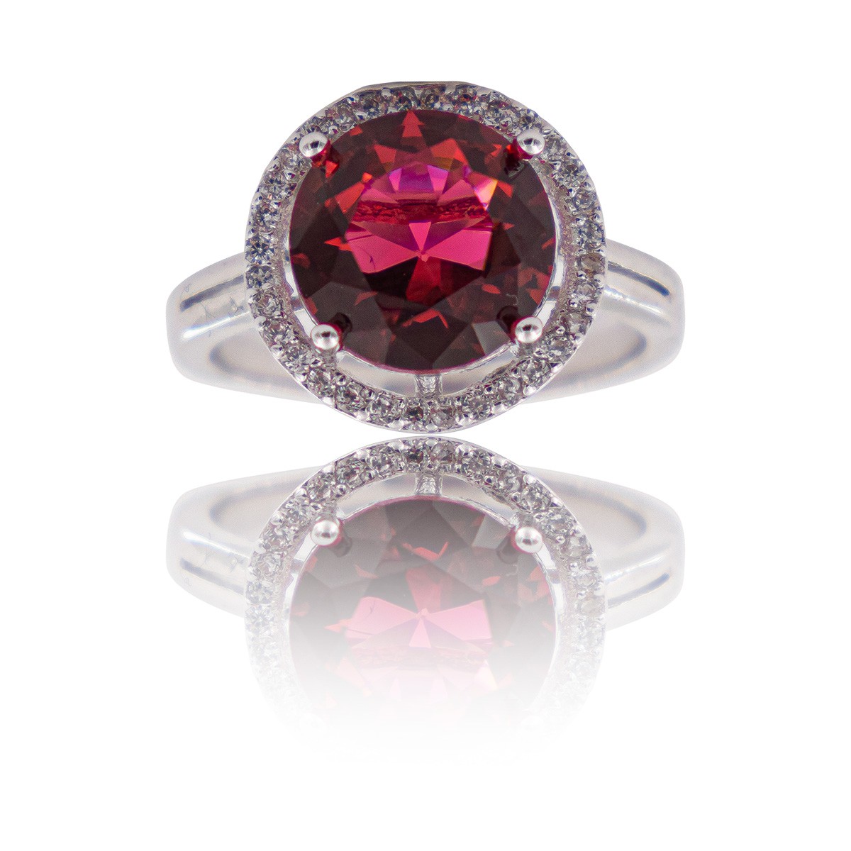 – Cette bague pour femme est tout simplement magnifique. Tout en rhodium, elle bénéficie de jolies finitions. Elle est ornée d’un magnifique Oxyde de Zirconium rouge et d’autres plus petits qui est une pierre de synthèse. L’aspect de cette pierre donne un look de Diva à qui la portera.