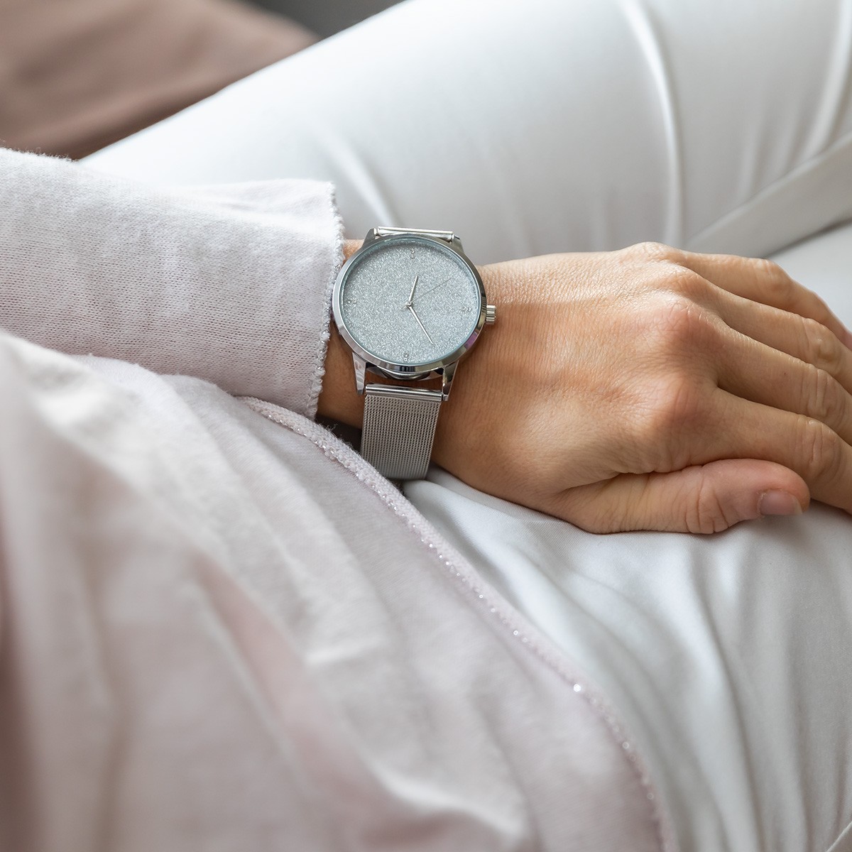 – Cette montre pour femme livrée en coffret au format XL est très incroyable avec son style éclatant. Son cadran brille grâce à ses centaines de paillettes. Son cadran est très épuré avec de belles aiguilles de la même couleur que le bracelet. Plus qu’une montre c’est un véritable bijou. Son bracelet est en maille milanaise est très facile à régler sans outils spécifique