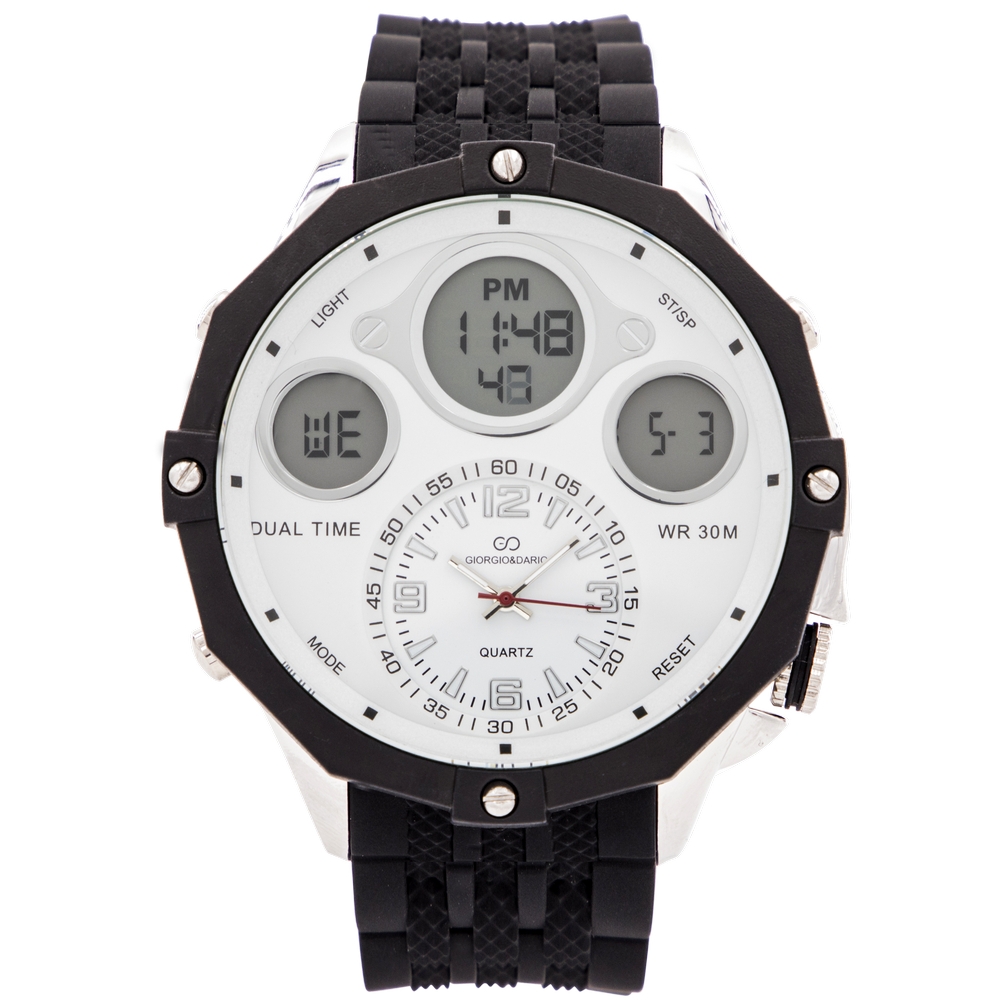 – Mouvement : digital et aiguilles avec fonctions : alarme, chrono, dateur,Lumière