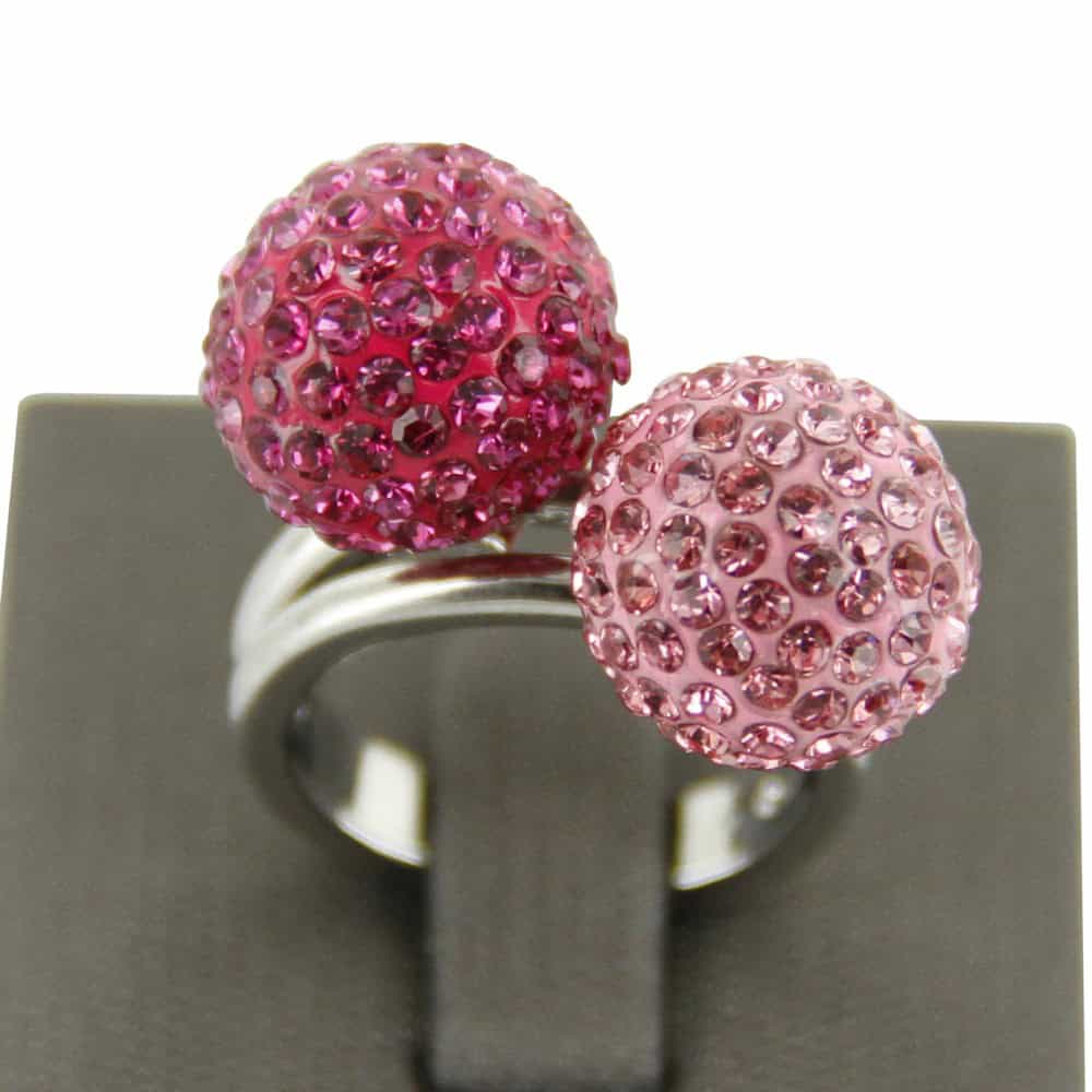 Jolie Bague Femme Boules Strass Roses DAPHNEE