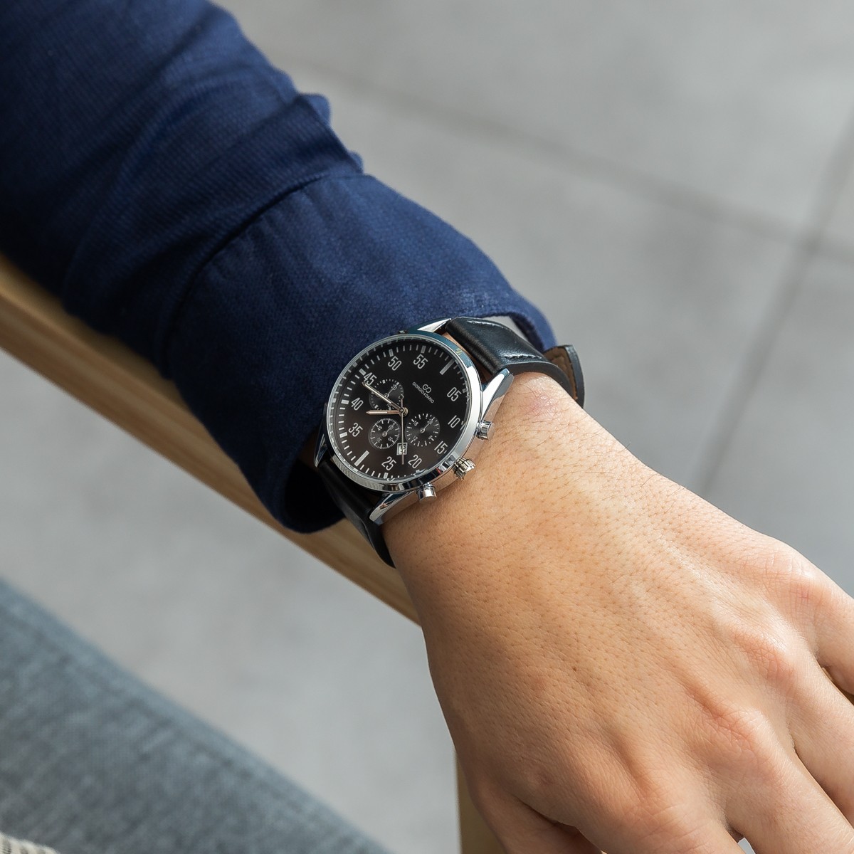 – Cadran : métal orné de trois cadrans factices pour un effet chrono