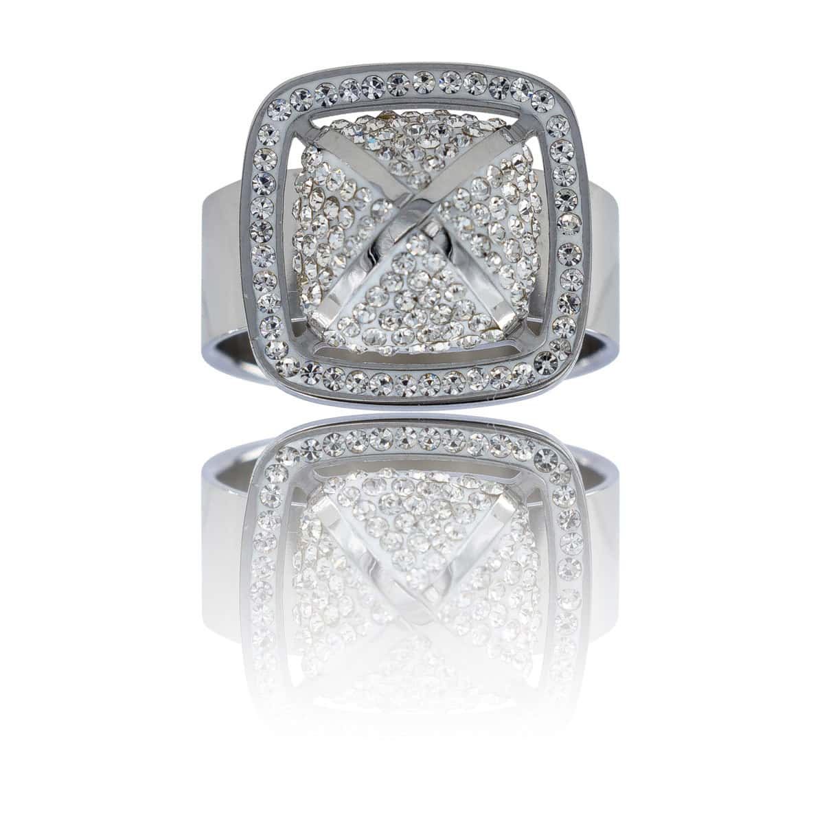 Magnifique Bague Femme Acier Ornée Zirconium
