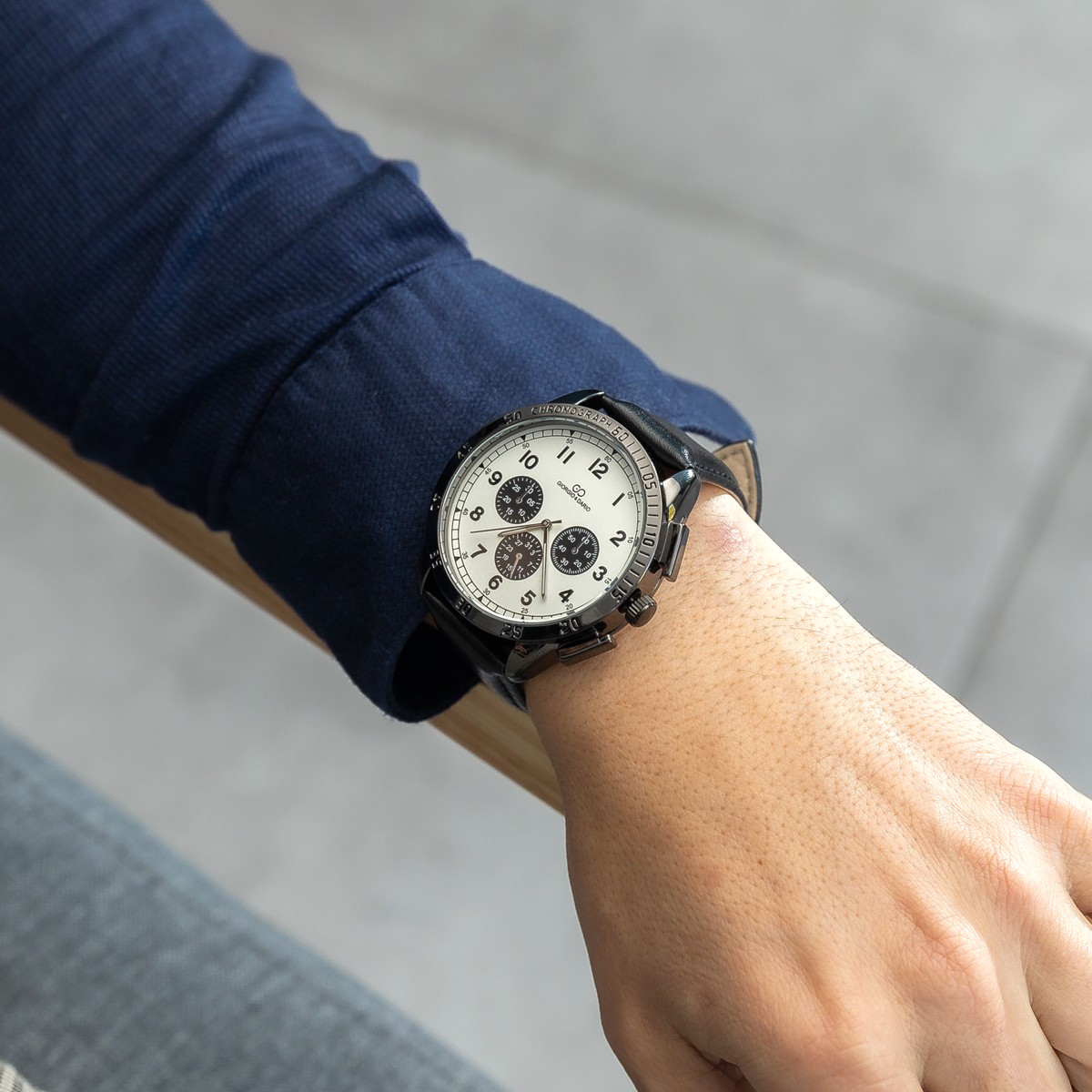 Cette montre homme est livrée avec pochette cadeau – Montre Homme Bracelet Cuir Synthétique – Cadran : Métal orné de trois cadrans factices pour un effet chrono – Dimensions cadran : 47x47mm – Verre minéral – Mouvement : PC21 (pile fournie) Japonais – Longueur totale de la Montre : 24cm – Le bracelet s’adapte à toutes les tailles de poignet – Etanche : non – Garantie légale de conformité et vices cachés de 2 ans