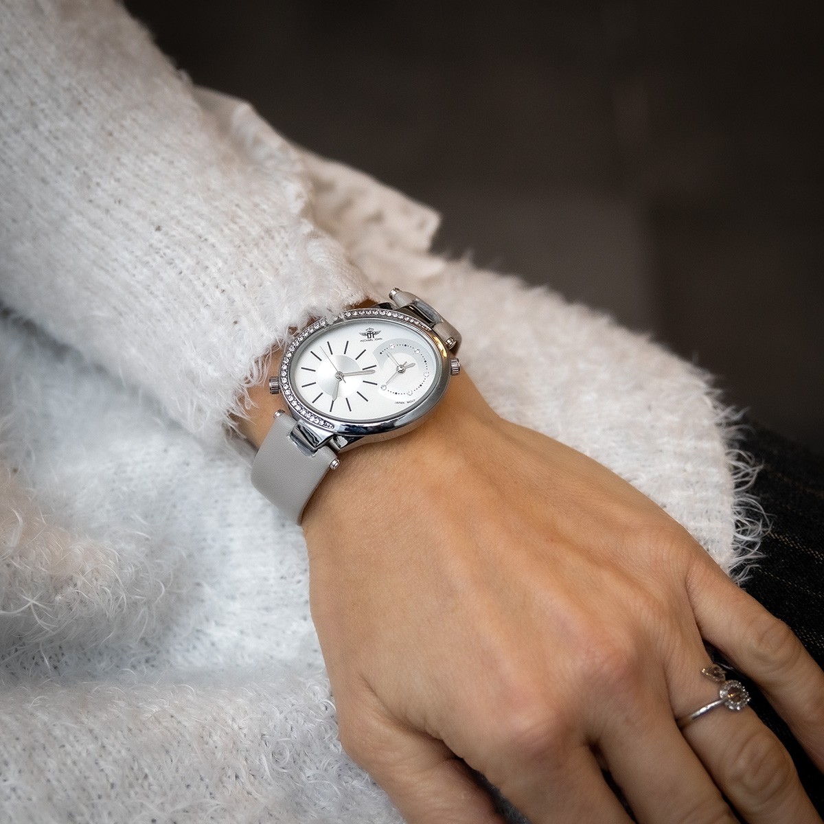 – Cette montre femme livrée avec sa pochette cadeau est équipée de deux cadrans horaires réglables séparément. Ce système de double affichage distincts permet de pouvoir suivre deux fuseaux horaires. C’est par exemple très pratique lorsque vous voyagez, vous conservez l’heure de votre pays de départ et l’heure du pays où vous séjournez. Cette montre femme sera aussi très utile si vous avez des proches qui vivent à l’étranger. Vous êtes sur de ne plus vous tromper sur le décalage horaire. De jolis strass ornent l’un des cadrans mais aussi l’extérieur du cadran principal