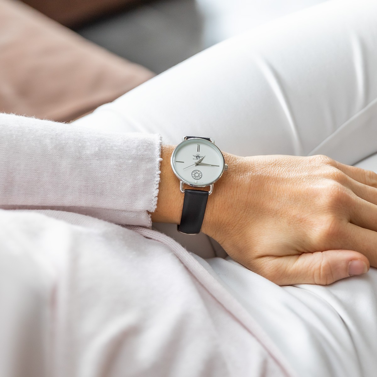 – Simple et épurée ! Cette montre femme avec son look très habillé sera votre compagne idéale pour toutes vos soirées chics. Son bracelet est fin et très bien travaillé avec son style cuir. Son cadran reprend les codes de l’horlogerie de luxe. Par exemple de très jolis petits strass ornent le bas du cadran. Ses quatre indexes métallisés se distinguent très facilement du cadran et vous permettent à l’aide de très belles aiguilles une lecture de l’heure agréable