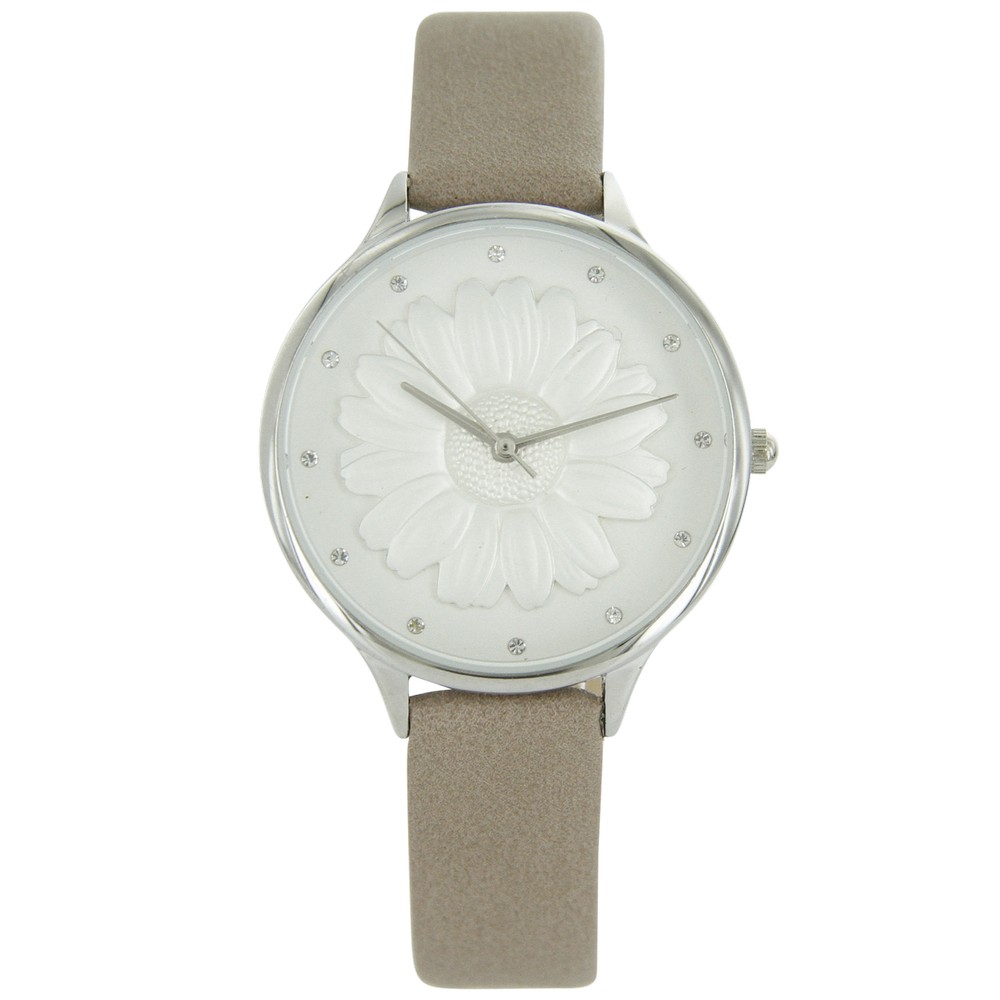 Montre Femme Taupe Relief Fleur Strass MICHAEL JOHN 741