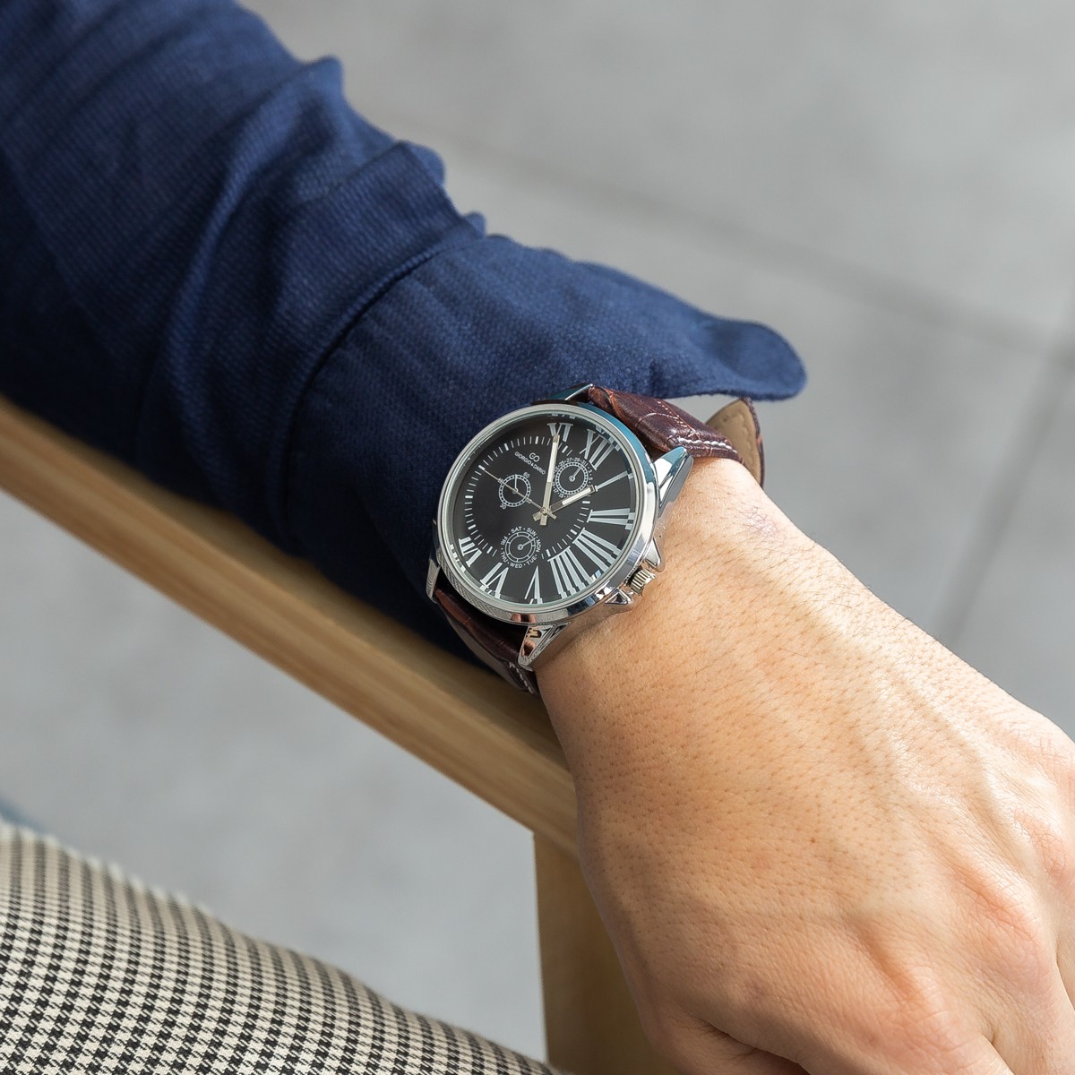 – Cadran : métal orné de trois cadrans factices pour un effet chrono