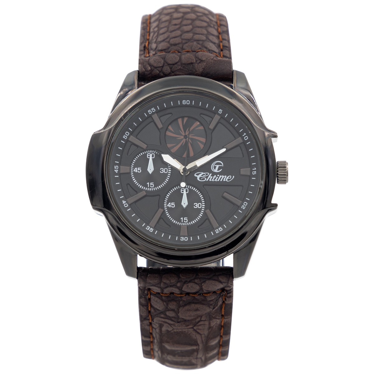 – Boitier : métal orné de trois cadrans factices pour un effet chrono