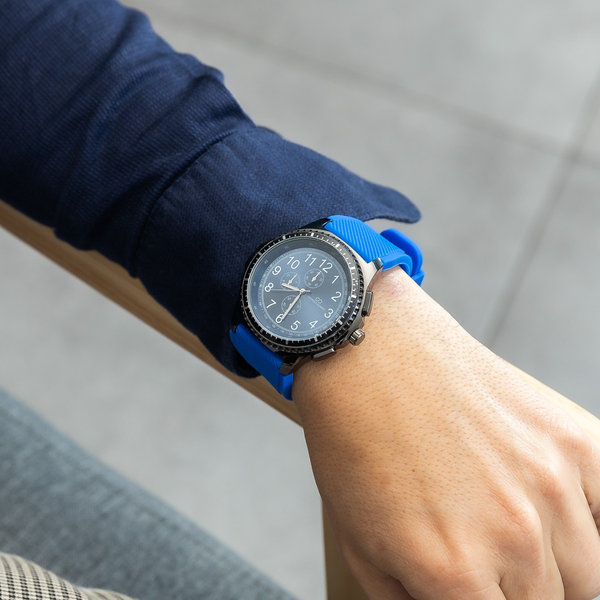 – Boitier : métal orné de trois cadrans factices pour un effet chrono