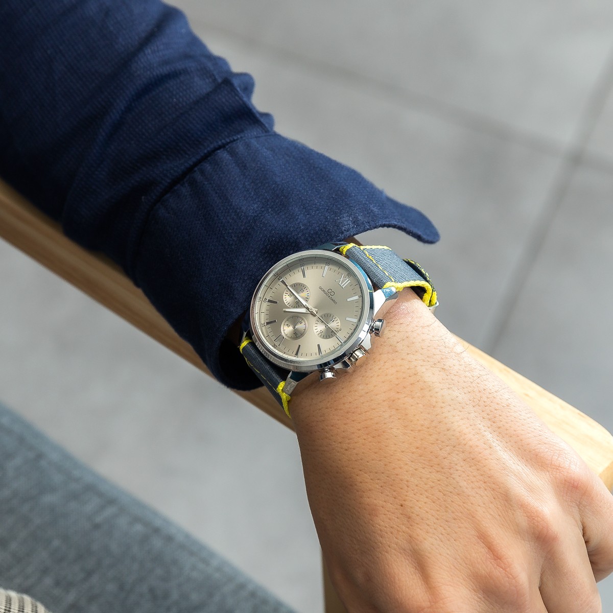– Cadran : métal orné de trois cadrans factices pour un effet chrono