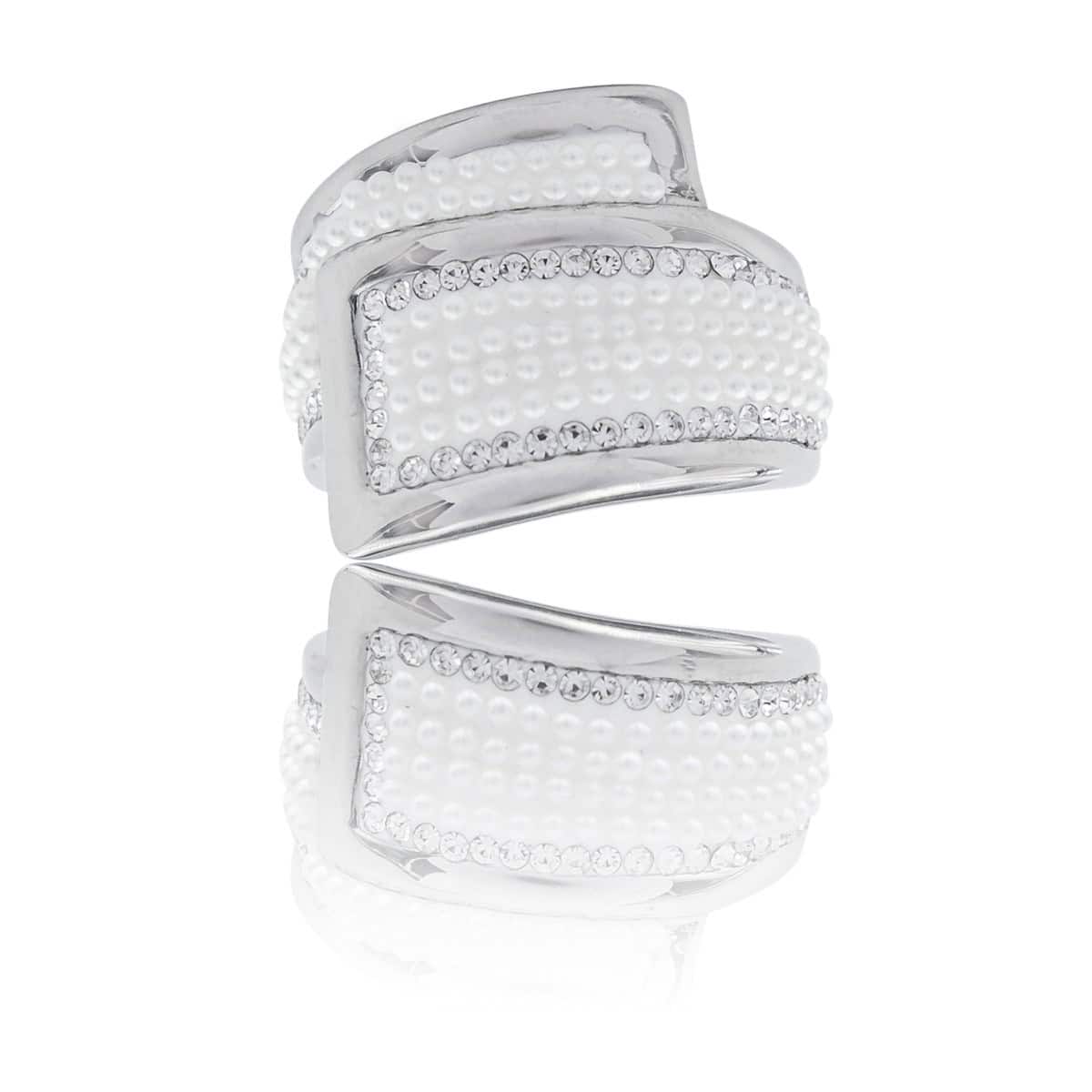 Bague femme avec perles de synthèse et strass oxydes de zirconium – La taille indiquée est le périmètre (le tour) de votre doigt en millimètre (mm) – Marque Française – Made in RPC – Matière : Acier – Largeur : 18mm – Livrée avec pochette cadeau