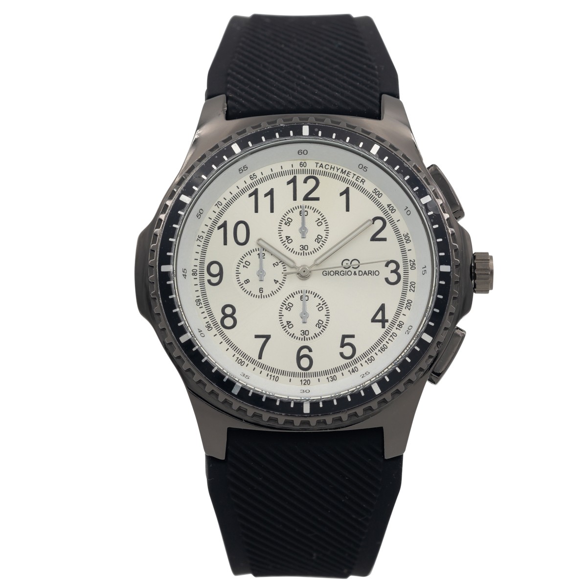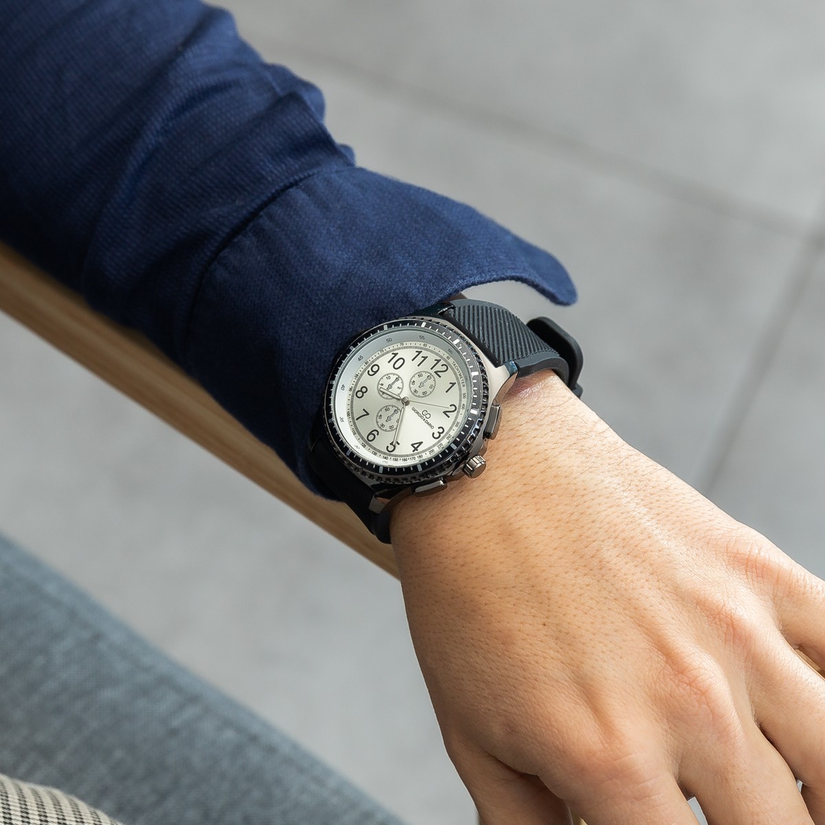 – Boitier : métal orné de trois cadrans factices pour un effet chrono
