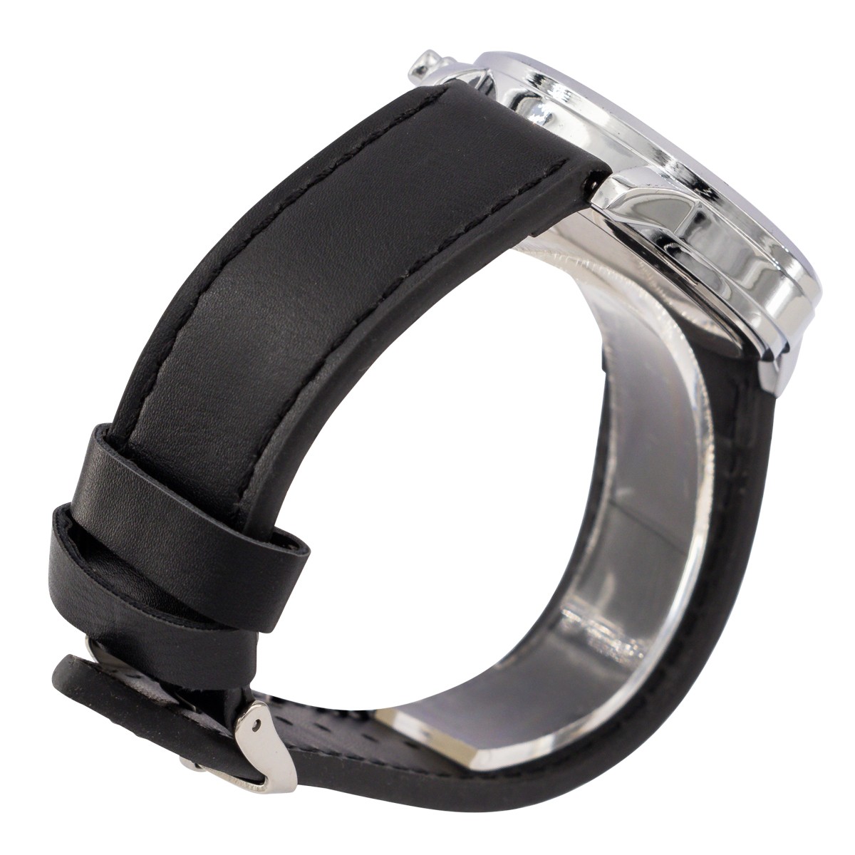 Craquez sur cette superbe montre homme avec bracelet couture surpiquée et son gros cadran effet chrono avec index stylisés