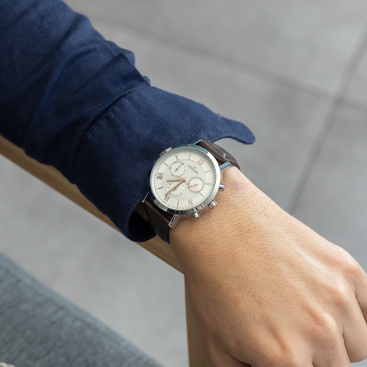 – Cadran : métal orné de trois cadrans factices pour un effet chrono