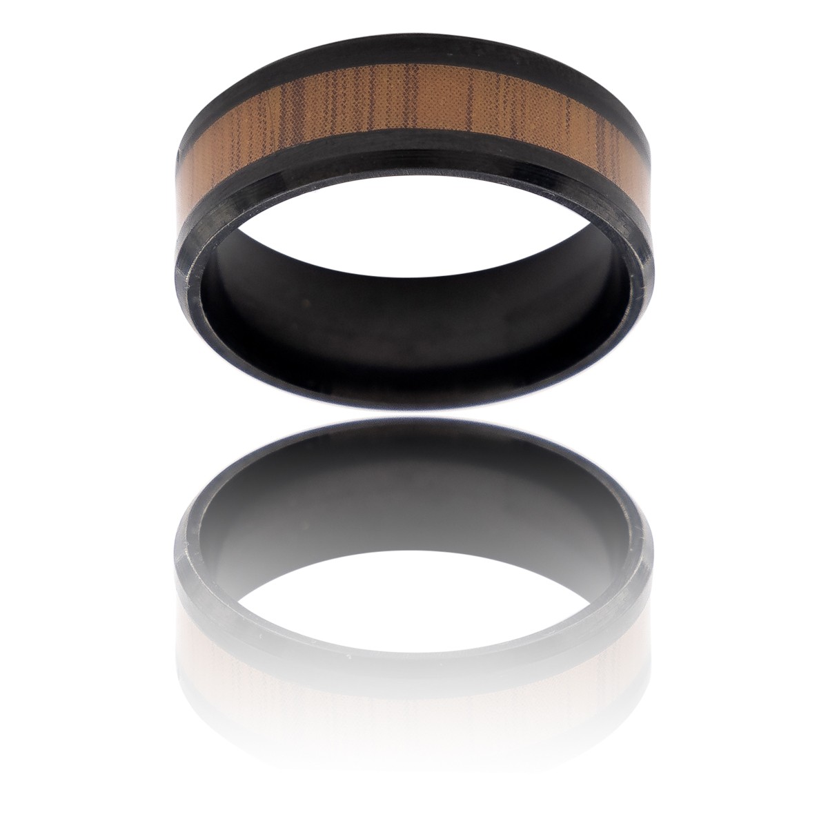 Votre Bague Anneau Fashion Homme Acier Noir Bois