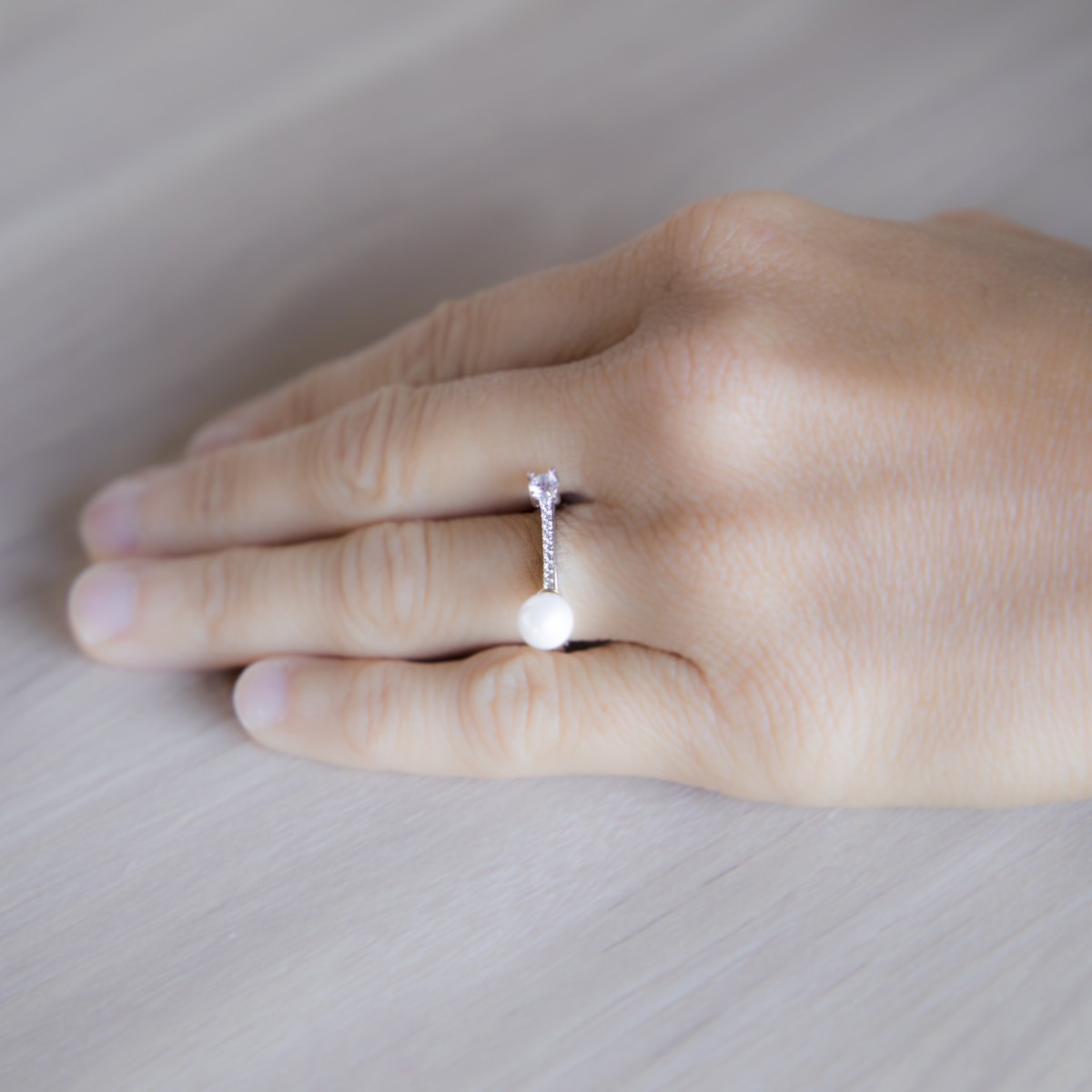 – Cette bague ajustable ornée d’une jolie perle de synthèse est réalisée avec des lignes francges directes et épurées.